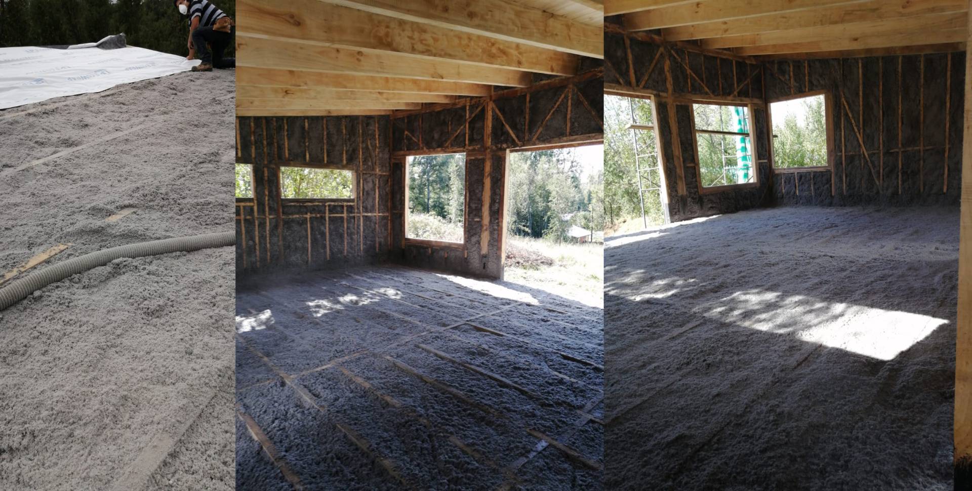 Video aislación bajo envigado de piso mediante celulosa proyectada