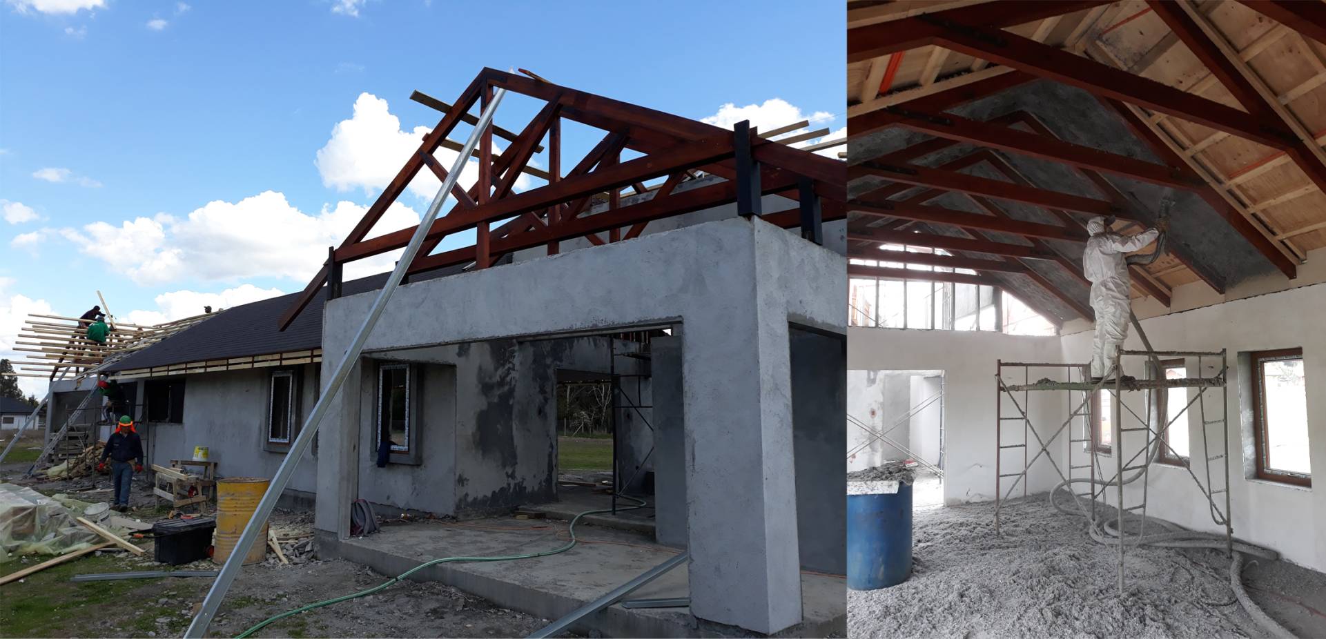 Video aplicación de celulosa bajo cubierta con cercha a la vista (espesor de aplicación 10 cm.)